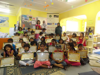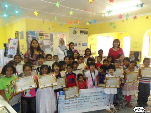 The ‘baby’ group holding their decoupage bottles filled with 100 1 cent coins painstakingly collected