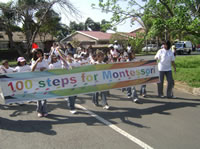 Everyone doing their 100 steps for Montessori with our beautiful banner made by Auto Colour